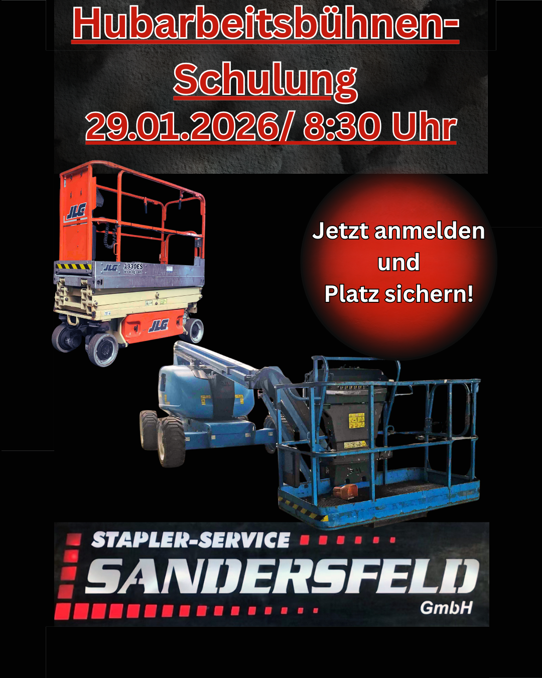 Am 29.01.2026 findet die nächste Schulung für Hubarbeitsbühnen statt. Vermittelt werden theoretische und praktische Kenntnisse. Geeignet ist diese Schulung für Personen, die ein wenig Erfahrung im Umgang mit Hubarbeitsbühnen haben.